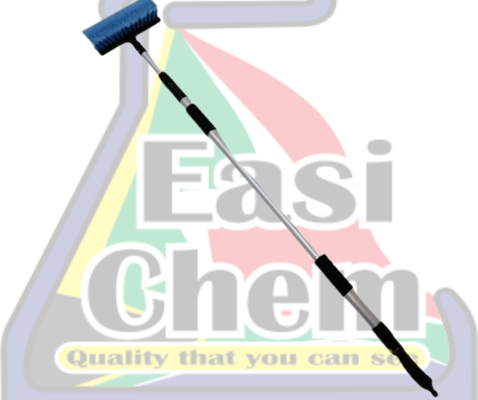 The blue bus wash broom comes with a 1.4m extendible stick and a broom head with a length of 25.4cm. The stick is extendible to 2.2m. The stick has two sponge grips around it for better grip when holding. At the end of the stick, there is a detachable hose connector with a ON/OFF switch. The stick consists of Aluminium, ABS, Nylon, TPR, EVA. The head is made of Polypropylene (PP) and PVC.