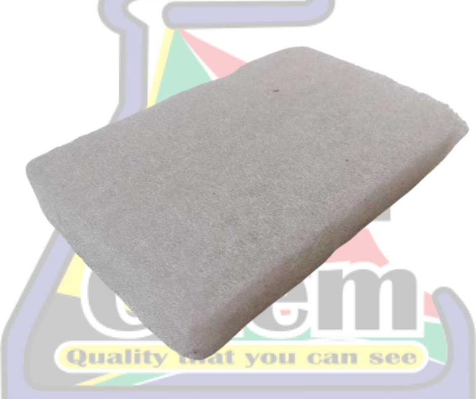A white hand pad that is abrasive and is ideal for scrubbing mild surfaces. The size of the hand pad is approximately 10cm x 15cm with a thickness of 2cm.